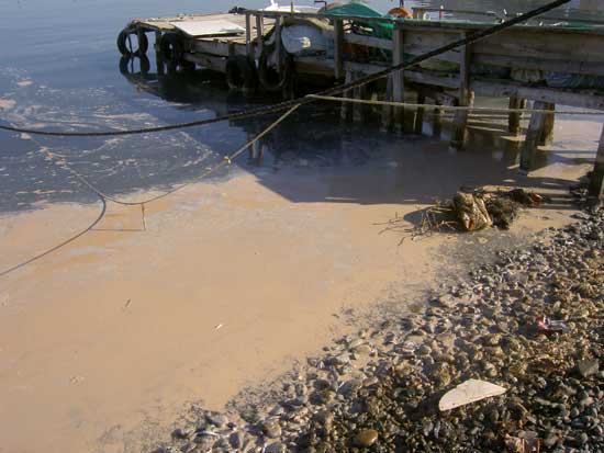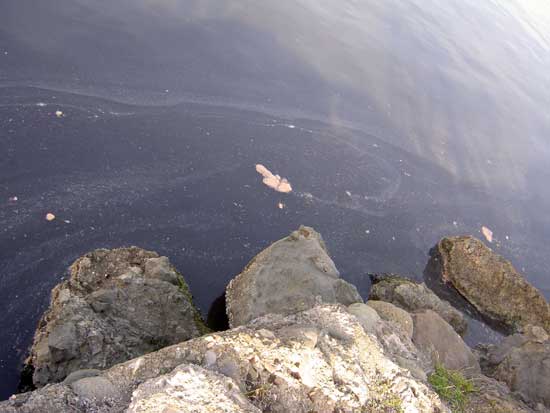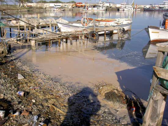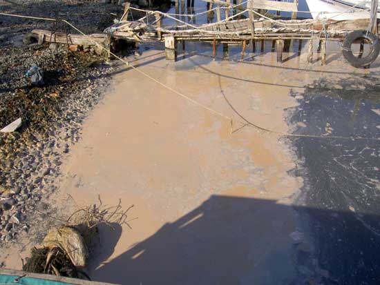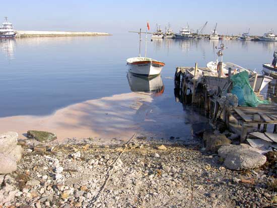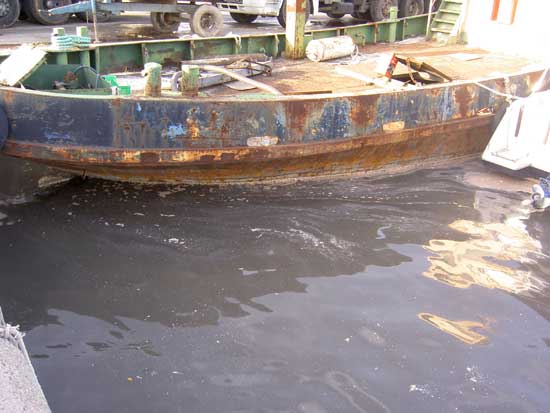 Karadeniz’de yüksek miktarda avlanan hamsi balığının çevredeki illere ve fabrikalara dağıtımının yapıldığı Samsun Yakakent Limanı’nın çevresindeki deniz suyu kirlilikle mücadele ediyor. Balık tezgahlarında tüketilmek üzere gönderilen hamsinin fazlası, 7adet su ürünleri üretimi yapan işletmeye gönderilmek üzere Yakakent Limanı’nda toplanıyor. Orkinos, levrek ve çupra gibi balık çiftliklerine yem yapılması ya da kanatlı hayvanlara küspe için fabrikalara sevk edilecek tonlarca balık, Yakakent Limanı’na teknelerle getiriliyor. Teknelerin güverte ya da ambarlarındaki hamsi balıkları, fisboom adı verlen bir su pompası ile kamyonların kasalarındaki metal tanklara basılıyor. Tekneden alınan balığı deniz suyuyla birlikte tanklara aktaran fishboomun ardından tanklar doluyor. Tank dolarken tonlarca hamsi kendi ağırlığında ezilerek alta çökerken tankın içindeki suya kan ve yağ bırakıyor Tankın içinde biriken deniz suyu belli bir seviyeye geldiğinde ise vanalar açılarak atık su önce rıhtıma ve oradan da denize boşaltılıyor.