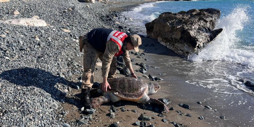 Bölgeye gelen jandarma ve Doğa Koruma ve Milli Parklar Müdürlüğü ekipleri, caretta caretta cinsi deniz kaplumbağasının kabuğundan yaralı olduğunu belirledi.