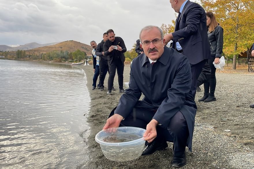 Elazığ'ın Sivrice ilçesinde bulunan Hazar Gölü'ne balık stokunun korunması için 200 bin yavru siraz balığı takviyesi yapıldı.