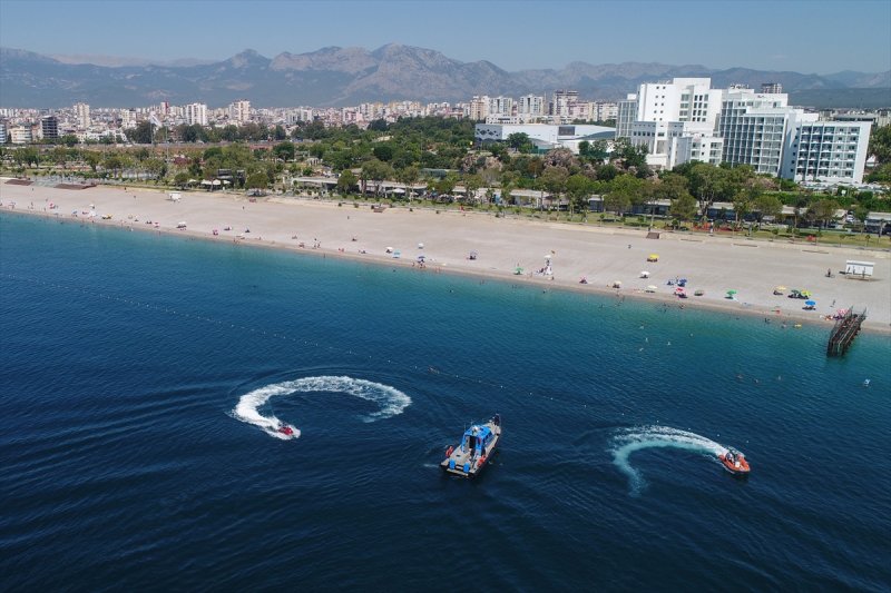 İl Emniyet Müdürlüğü’ne bağlı olarak kurulan Deniz Şube Müdürlüğü ekipleri, tedbirlerin esnetilmesi sonrasında sahillerin vatandaşlara açılmasıyla mesailerinin büyük kısmını, Konyaaltı Sahili açıklarında geçiriyor.