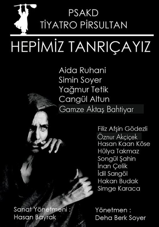 Pir Sultan Abdal Derneği Eyüp Alibeyköy şubesi Cemevi ve Kültür Merkezi bünyesinde faaliyet gösteren Tiyatro Pirsultan “Hepimiz Tanrıçayız” adlı oyunla 08 mart dünya kadınlar gününde etkinlikleri kapsamında sahnede.