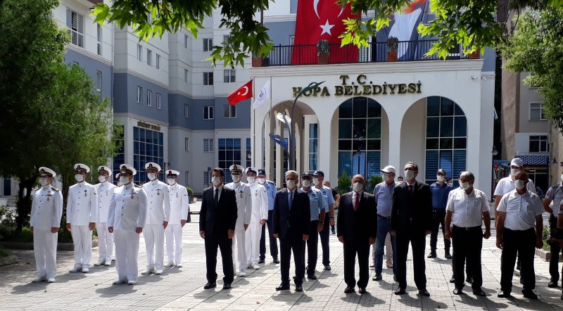 Belediye parkında bulunan Atatürk aniti önünde düzenlenen Çelenk koyma töreni öncesi günün önemini içeren konuşma yapıldı ve ardından Hopa Liman Başkanlığı, Deniz Ticaret Odası Hopa temsilciliği ve HOPAPORT anıta çelenklerini koydular. Atatürk ve Deniz şehitleri için saygı duruşu yapıldı ve ardından İstiklal Marşının okunması sonrası buradaki tören sona erdi.