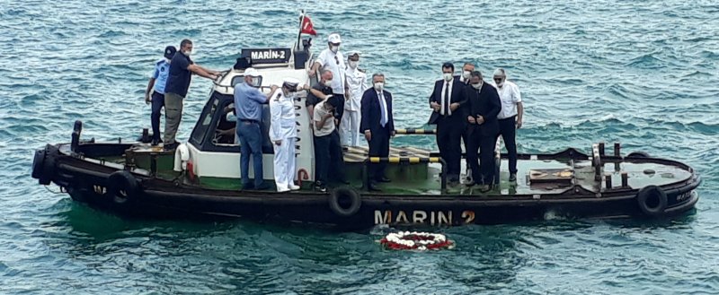 Hopa Kaymakamı Abdurrezzak Canpolat, Belediye Başkanı Taner Ekmekçi, Sahil Güvenlik Bot Komutanı Umut Özdemir, Liman Başkan vekili Turgay Karaşah, DTO Temsilcisi Tekin Ataselim, HOPAPORT İK Müdürü Turan Kılıç ve Güvenlik Amiri Hüseyin Yalçın Palamar ile İskele açıklarında denize deniz şehitleri için siren eşliğinde çelenk bırakılması ardından törende sona erdi.