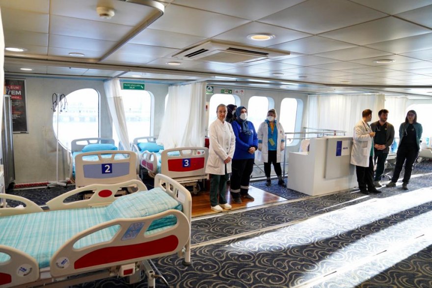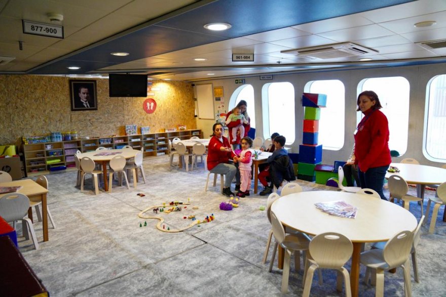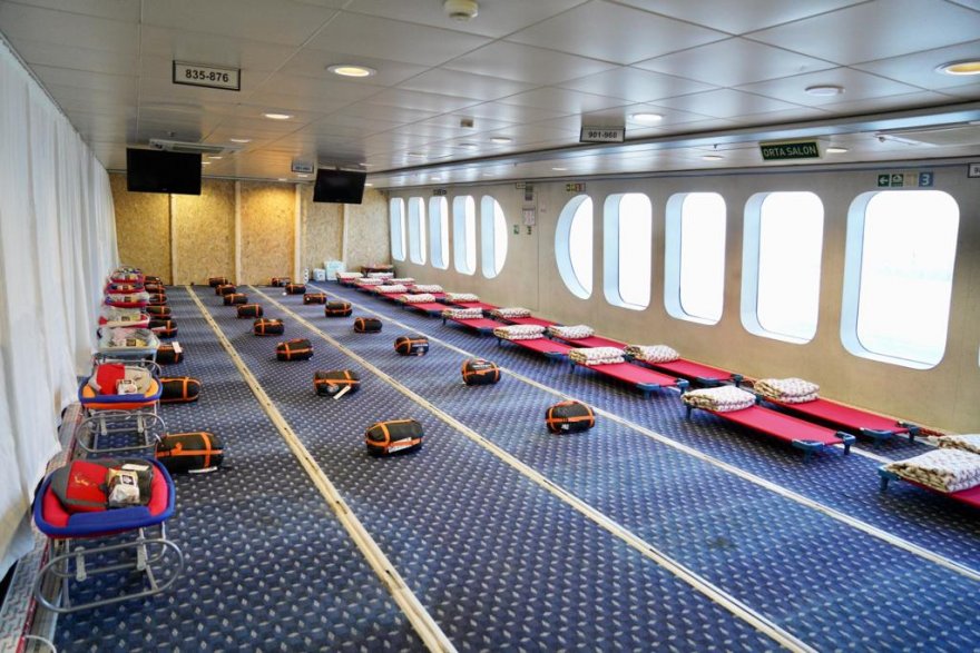 Yaşam merkezi haline getirilen İDO’ya ait deniz otobüsü ve bir geminin içerisi kısa zamanda yeniden dizayn edildi. Gemilerin içerisinde kreş, mutfak, revir ve sağlık üniteleri de dahil olmak üzere birçok detayın olduğu görüldü.