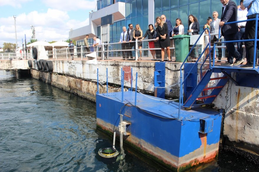 Konuşmaların ardından Yenikapı Limanı'nda sabit bir yere konulan ve denizdeki pet şişe ve plastik poşetleri toplayan yüzen çöp kutusunun nasıl çalıştığı, hakkında bilgi verildi.