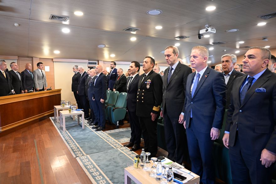 Oda Meclis Salonu’nda, İMEAK DTO Meclis Başkanı Başaran Bayrak başkanlığında gerçekleştirilen toplantının açılışında, Zonguldak Karadeniz Ereğli’de, olumsuz hava ve deniz koşulları nedeniyle 19 Kasım’da batan Türk bandıralı kuru yük gemisinin mürettebatı için saygı duruşunda bulunuldu.