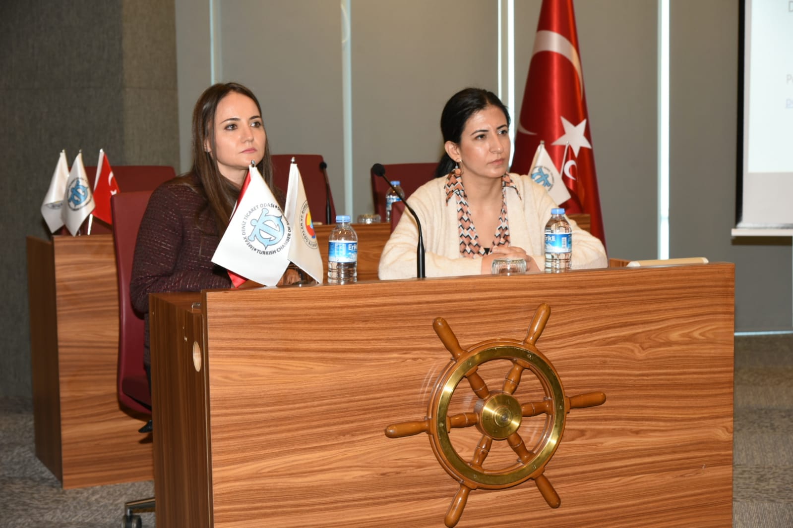 İMEAK Deniz Ticaret Odası (DTO) İzmir Şubesi meclis salonunda gerçekleştirilen panelde konuşmacı olarak Yaşar Üniversitesi İşletme Fakültesi Öğretim Üyesi Dr. Öğr. Üyesi Pervin Ersoy Ataç ile Dokuz Eylül Üniversitesi Denizcilik Fakültesi Öğretim Üyesi Arş. Gör. Dr. Duygu Şahan yer aldı.