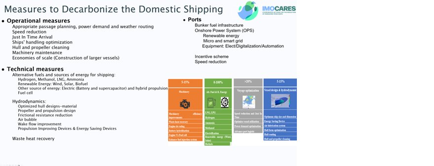 Karayipler ve Afrika bölgelerindeki SIDS ve LDCs ulusal sularda çalışan deniz ticaret filosunun yaklaşık % 50’sini römorkörler oluşturmakta olup, römorkörlerin ve feribotların karada elde edilecek yenilenebilir elektrik enerji ve limanlarda kurulacak şarj istasyonları ile doldurulacak bataryalar kullanılarak sevk edilmesi denizcilik kaynaklı sera gazları emisyonlarını % 50-60 azaltabilecek en etkili tedbir olarak belirlenmişti. Alternatif olarak rüzgar, güneş veya biyo-kaynaklardan elde edilecek yenilenebilir enerji ile alternatif yakıt kullanımı bulunmuştur.