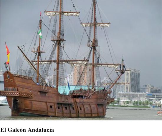 Diğer taraftan, aşağı yukarı aynı tarihlerde İstanbul’u ziyaret edecek olan bir diğer gemi ise, “Endülüs Kalyonu”. Bu gemi, Atlas Okyanusu’ndan İspanya ile Amerika arasında, Pasifik Okyanusu’ndan ise Amerika’nın batı kıyıları ile Filipinler arasında yapılan ticari taşımacılıkta kullanılan yük gemilerinin bir kopyası. Endülüs Yerel Hükümeti tarafından, turistik ve kültürel tanıtım amacıyla inşa ettirilmiş. Bu gemi aynı zamanda, eski yelkenli gemicilik konusunda yapılan araştırmalarda da kullanmak amacıyla yaptırılmıştır; bunun için Endülüs Yerel Hükümeti pek çok Üniversiteyle anlaşma imzalamış. “Endülüs Kalyonu” gemisi kısa bir süre önce düzenlenen uluslararası fuarda bulunmak üzere Şangay’a gitmiş. Geminin uzunluğu 51 metredir ve yedi yelkeni tutmak üzere dört direği bulunmaktadır. Geminin gövdesi su geçirmemesi için cam elyafla kaplanmıştır. Güvenlik açısından ise, ileri düzeyde bir telekomünikasyon teknolojisine sahiptir.