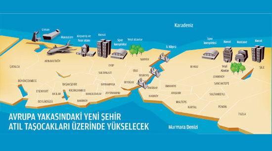 Başbakan Erdoğan'ın Avrupa yakasında "40 bin hektarlık alan üzerine, maden ocaklarının olduğu bölgede inşa edilecek." diyerek işaret ettiği bölge Uskumruköy ve Yalıköy'e kadar uzanan kıyı şeridini kapsıyor. Anadolu yakasında kurulacak ikinci şehrin ise 3. köprü güzergâhında bir çıkışı bulunan Sancaktepe Paşaköy üzerinden Kurtköy ve Pendik'le birleşeceği öğrenildi.