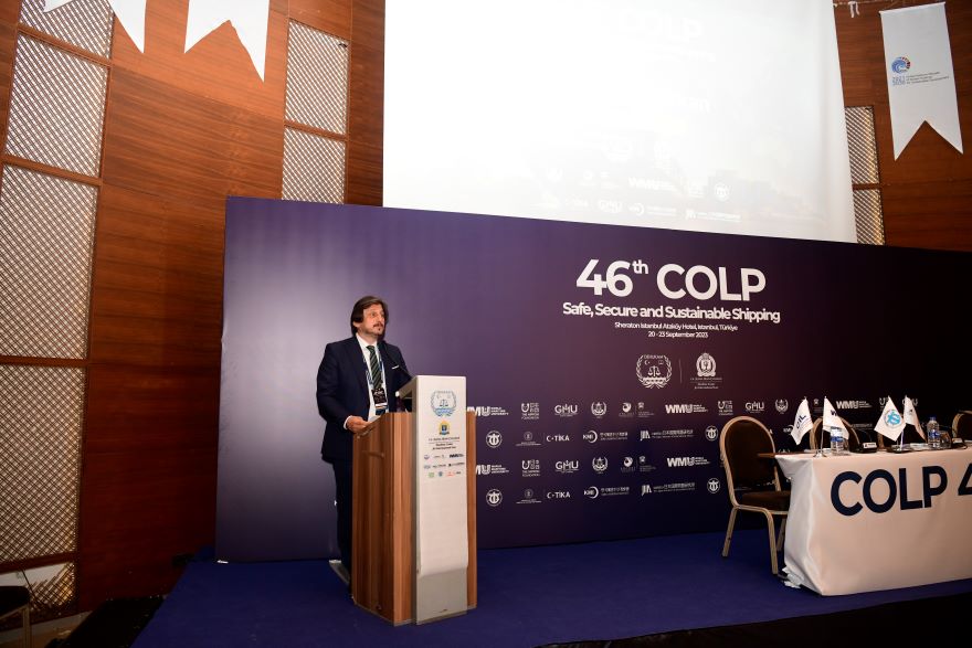 İMEAK Deniz Ticaret Odamızın ana sponsorluğunda, AÜ Deniz Hukuku Ulusal Araştırma Merkezi (DEHUKAM) ev sahipliğinde düzenlenen, "Conference on Ocean Law and Policy" (Okyanus Hukuku ve Politikası Konferansı-COLP)" programının 46. yıl etkinliği, "Güvenli, Emniyetli ve Sürdürülebilir Denizcilik" teması ile 21 Eylül 2023 Perşembe günü İstanbul’da başladı.