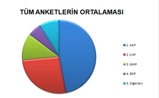 Seçimlere çok az bir süre kala anketler peş peşe gelmeye başladı. Partilerin kendi yaptırdığı anketlerin yanında bazı araştırma şirketleri de yaptıkları çalışmalarla seçmenin nabzını tutular. Kimi anketlerde tavan yapan partiler bazı anketlerde ise şok düşüş yaşadı. Bundan önceki seçimlerde doğru tahminlerde bulunan ve Türkiye genelinde araştırmalar yapan şirketlerin anketleri birbirine çok yakın çıksa da hiçbir araştırma şirketinin sonucu yüzde yüz kesin değildir. Muhakkak bir sapma oranı vardır. Ama yapılan tüm araştırmaların ortalaması seçim sonuçlarına en yakın sonucu bildirmektedir.