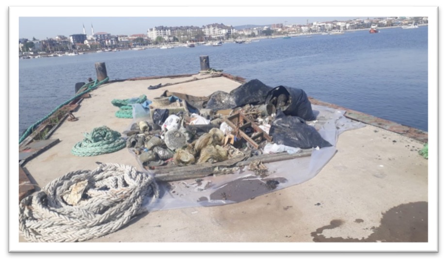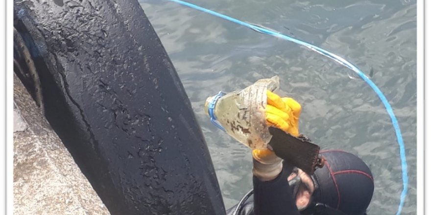 Çevre kirliliğe karşı duyarlılık oluşturmak amacıyla gerçekleştirilen kıyı ve su altı temizliği etkinliğinde, eko sistemi ve deniz yaşamını olumsuz etkileyen katı atıklar temizlenerek sergilendi.