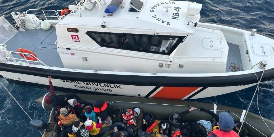 Bölgeye sevk edilen ekipler, durdurduğu lastik bottaki 40 düzensiz göçmeni yakaladı.