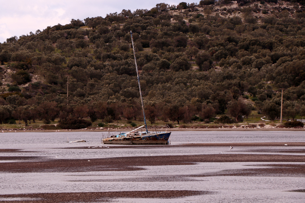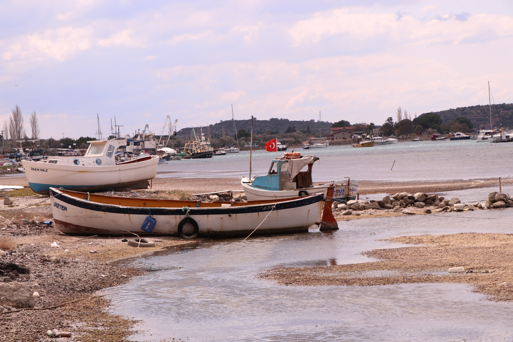 Bademli Limanı'nda 3 kayık, deniz çekilmesi nedeniyle karaya oturdu, denizin bazı noktalarında küçük adacıklar oluştu.