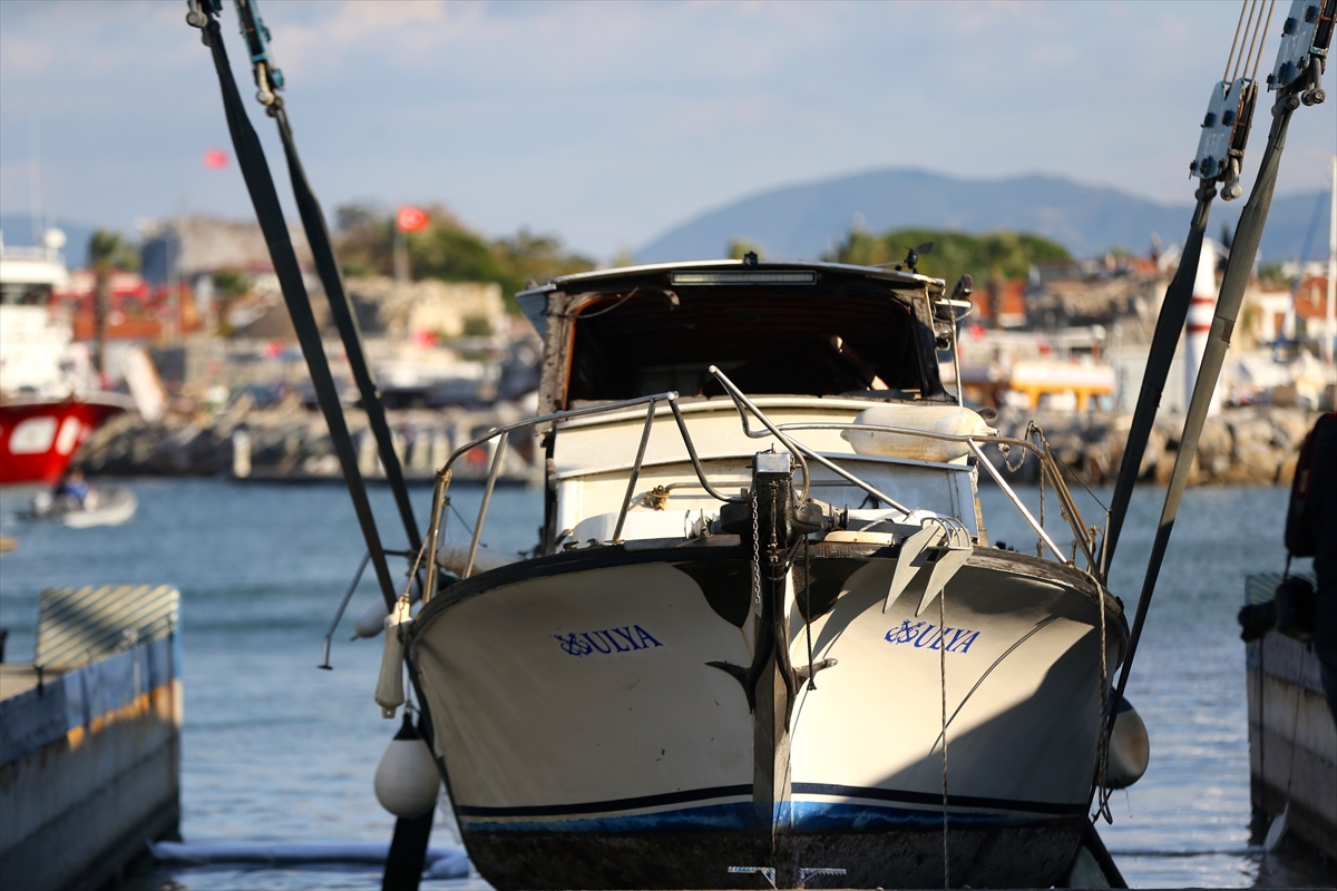 Karadaki enkaz kaldırmayla eş zamanlı olarak deniz altında da devam eden çalışmada yerleri tespit edilen batıklar, dalgıçlar yardımıyla önce su yüzüne çıkarıldı daha sonra limana çekildi.