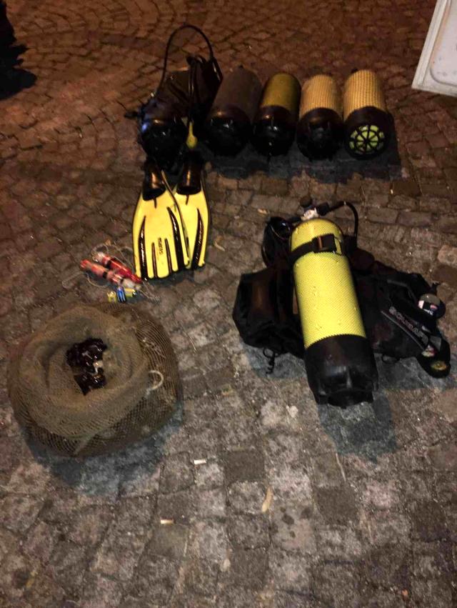 Ekipler, bölgede yaptığı incelemede, kaçak avlanan 50 kilogram deniz patlıcanı, 6 dalış tüpü, 2 şamandıra, dalış paleti ve dalış için kullanılan ağırlığa el koydu.