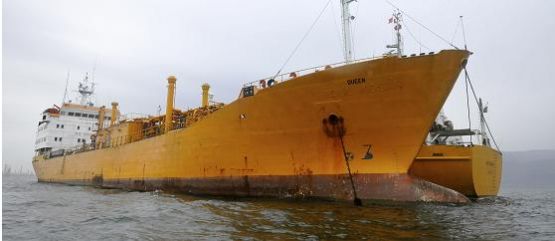 İzmit Körfezinde yaklaşık 6 yıl önce mahkeme kararıyla el konulan "Chernomores" gemisindeki akaryakıtın, yanına yanaşan başka bir tankere aktarımına başlandı.