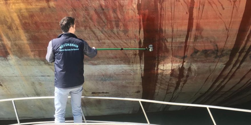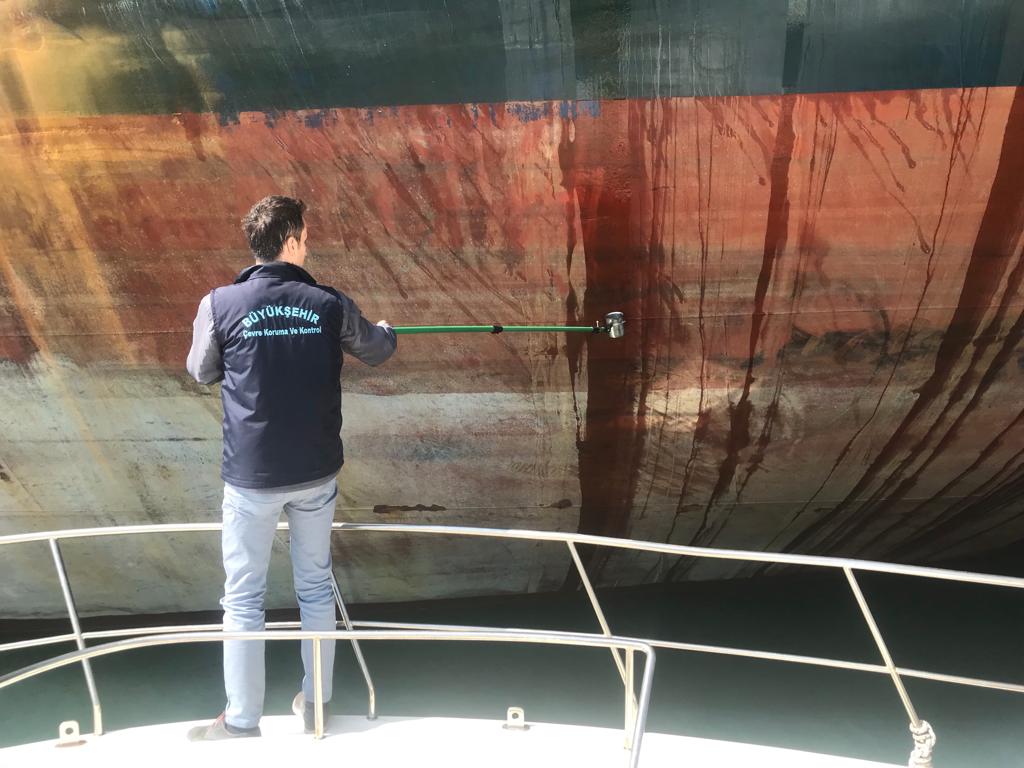 Deniz kirliliğine sebebiyet veren gemiden numuneler alınarak, yetkili laboratuvara gönderildi.