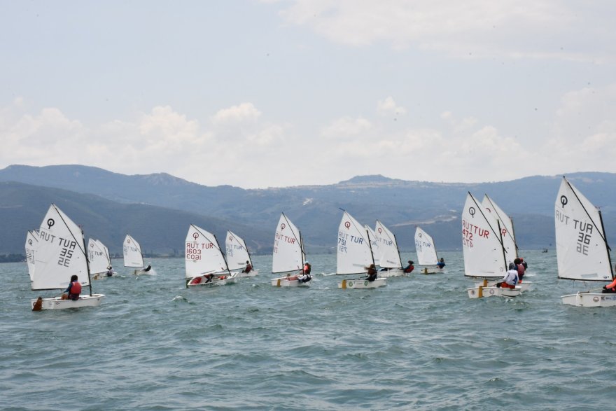 İznik Gölü'nde gerçekleştirilen yelken yarışlarında gençler rüzgara karşı muhteşem mücadeleler verdi.