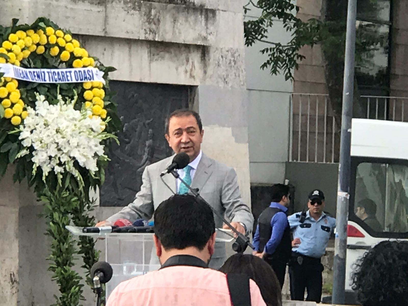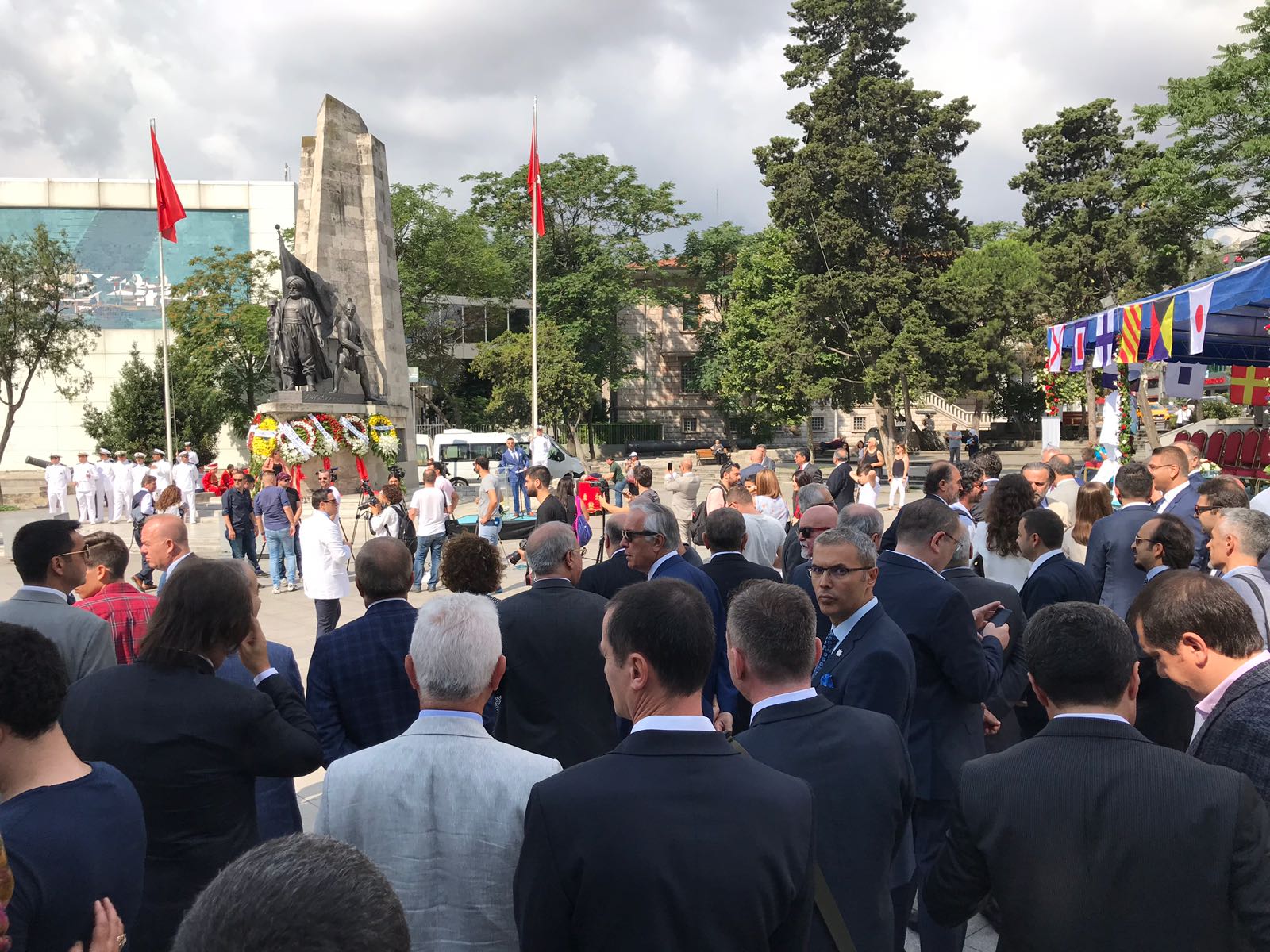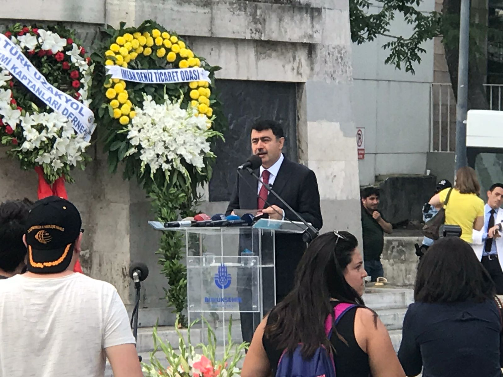 Buradan Beşiktaş iskelesinde bekleyen Kıyı Emniyeti gemisine binen Vali Şahin ve beraberindeki heyet, İstanbul Boğazı'na çelenk bıraktı ve Boğaz'da gerçekleştirilen töreni izledi.