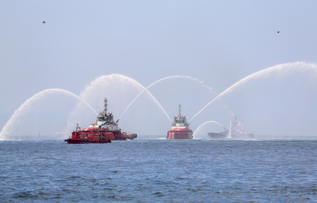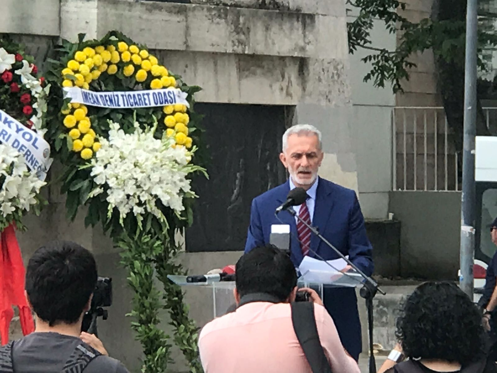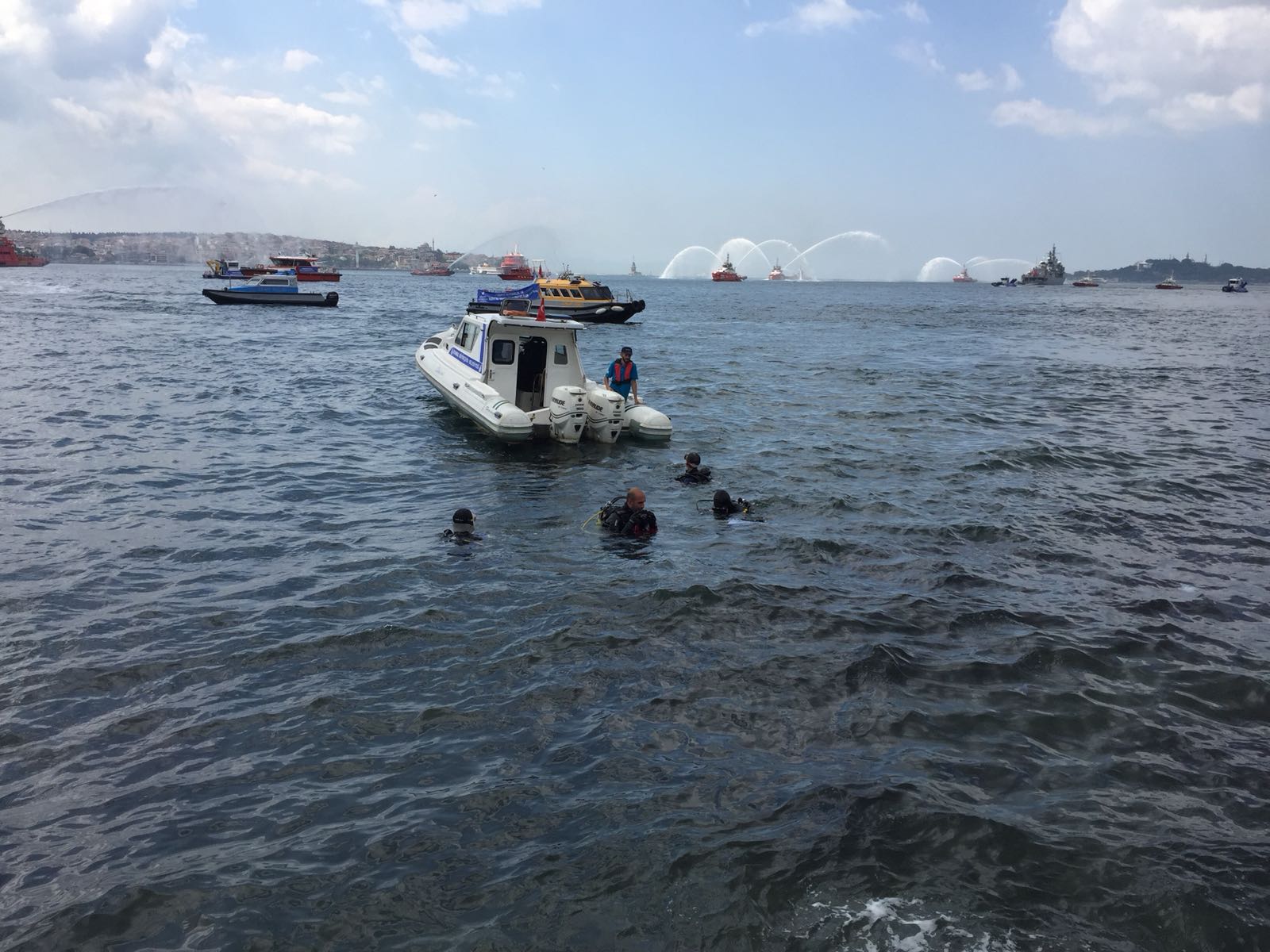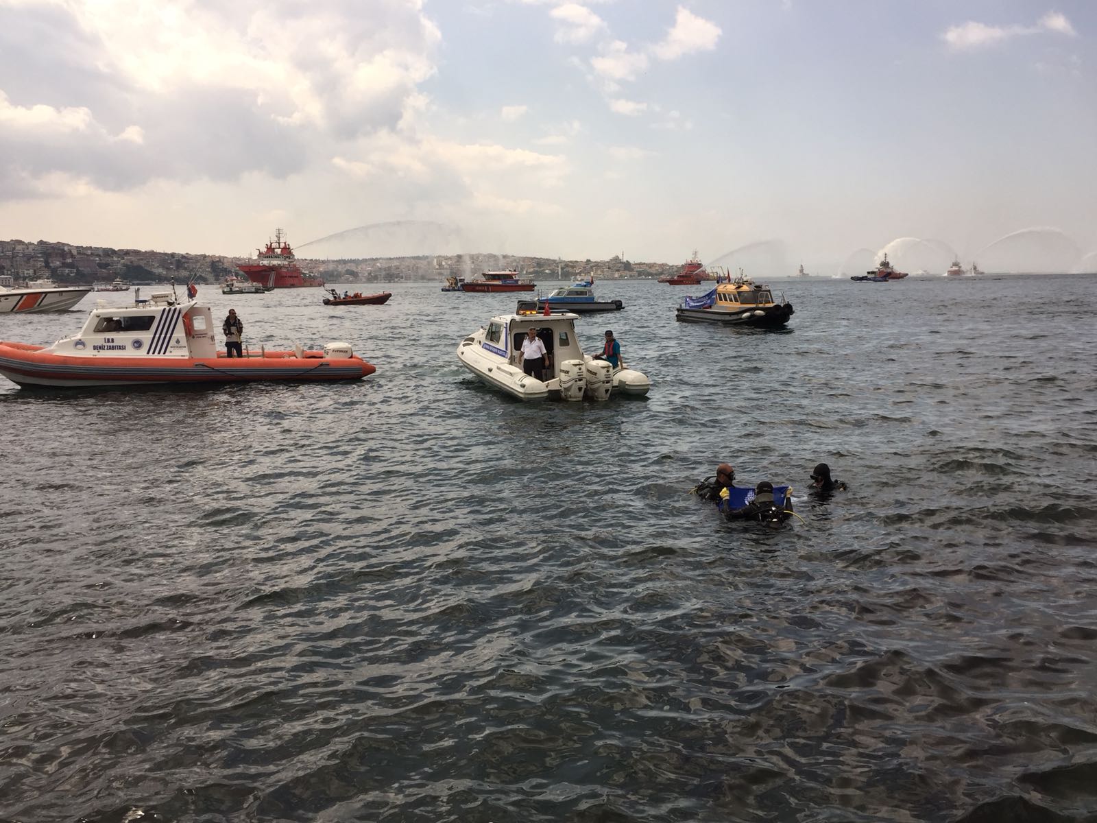 Buradan Beşiktaş iskelesinde bekleyen Kıyı Emniyeti gemisine binen Vali Şahin ve beraberindeki heyet, İstanbul Boğazı'na çelenk bıraktı ve Boğaz'da gerçekleştirilen töreni izledi.