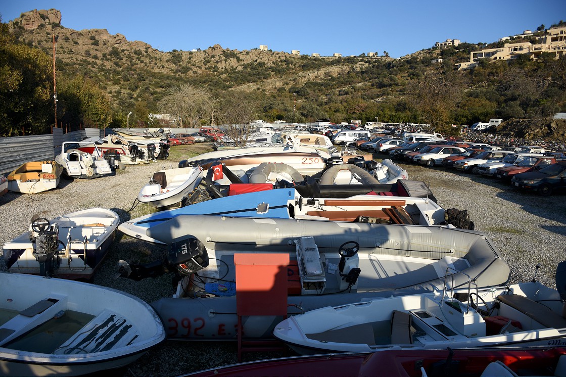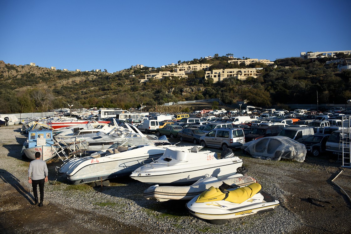 Yeni bir hayata kavuşmak için tüm risklere rağmen yasa dışı yollarla denizden Yunanistan'a gitmeye çalışan düzensiz göçmenlerin kullandığı ve yakalanmalarının ardından el konulan deniz araçları, Muğla'nın Bodrum ilçesinde trafik otoparkında muhafaza ediliyor.