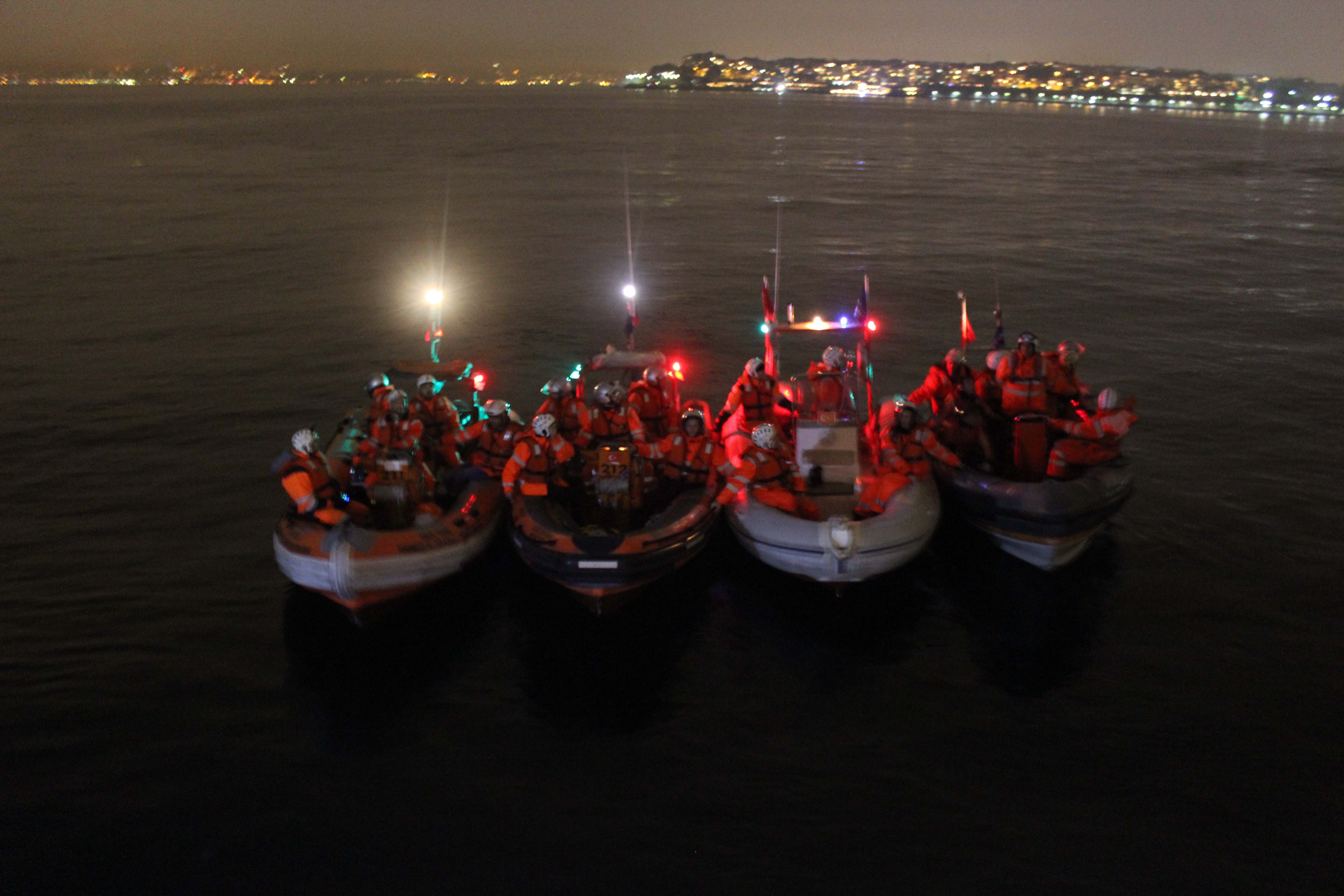 Denizciler Dayanışma Derneği'nin Arama Kurtarma kuruluşu DAKSAR, Fenerbahçe burnu açıklarında gece denizde arama kurtarma tatbikatı yaptı.