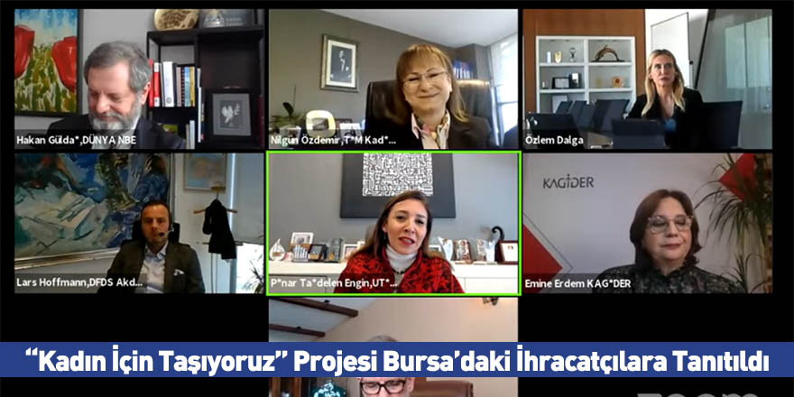 DFDS Akdeniz İş Birimi ve KAGİDER iş birliği ile hayata geçirilen “Kadın İçin Taşıyoruz” projesini, 2021 yılında Dünya Gazetesi’nin desteği ile Anadolu’daki iş dünyası ve kadın ihracatçılarla buluşturacak dijital paneller serisine start verildi. Zoom platformu üzerinden gerçekleştirilen toplantılarının ilk ayağında proje Bursa’daki ihracatçılara tanıtıldı.