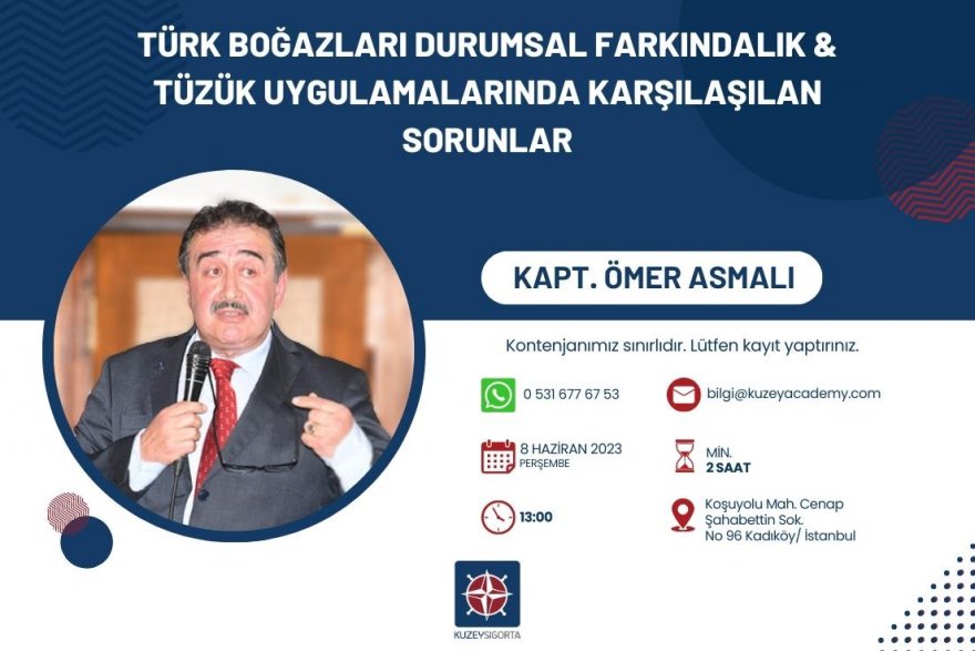 Kuzey Marine Sigorta Kıdemli Hasar Yöneticisi Kapt. Ömer Asmalı’nın katılımıyla düzenlenecek söyleşi 8 Haziran 2023 Perşembe günü saat 13.00’da başlayacak.