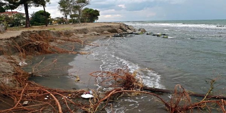 Samsun'un Atakum ilçesinde dalgaların çarpması sonucu 100 metrelik kumsalın aşınmasıyla geriye 10 metrelik bölüm kaldı, çevredeki ağaçlar da zarar gördü.