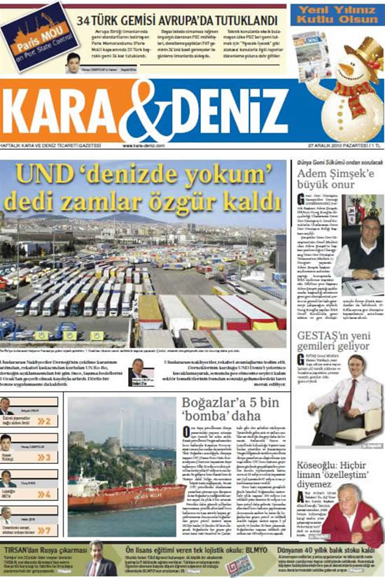 Selçuk Onur'un Genel Yayın Yönetmeni olduğu Kara&Deniz Gazetesi'nde Yayın Koordinatörlüğünü Hakkı Şen, Sorumlu Yazı İşleri Müdürlüğü'nü ise Recep Canpolat üsleniyor. 25 bin adet basılan ve Ulaştırma sektörünün nabzını tutan Kara&Deniz Gazetesi, dolu içeriği ve güçlü editoryal yapısı ile ilk sayısında okuyucuların büyük beğenisini kazandı.