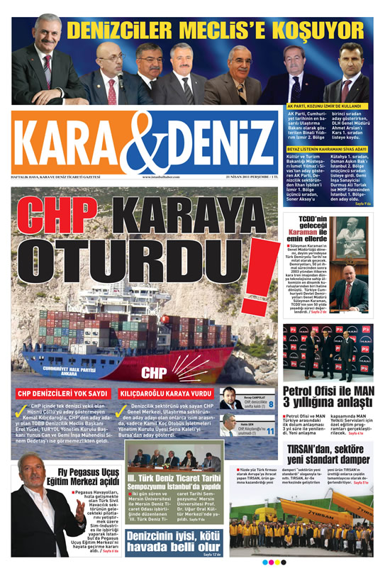 Kara&Deniz Gazetesinin bu haftaki yeni sayısının manşetinde "CHP KARAYA OTURDU"başlığıyla aktarılan haberde, Cumhuriyet Halk Partisi'nin vekil listesi konu başlıkları ile irdelendi. Güçlü editör yapısı ve 25 bin adet dağıtımı yapılan Kara&Deniz Gazetesi, hafta başından itibaren okuyucu ve abonelerin beğenisine sunuluyor.