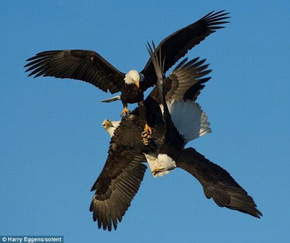 Bir balık için birbirine düşen 3 kel kartalın görüntüsü kameralara böyle yakalandı.