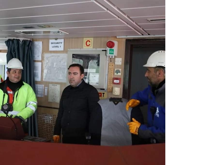 Cide Kaymakamı Tuncay Karataş, gemideki çalışmaları inceleyerek, yetkililerden bilgi aldı.