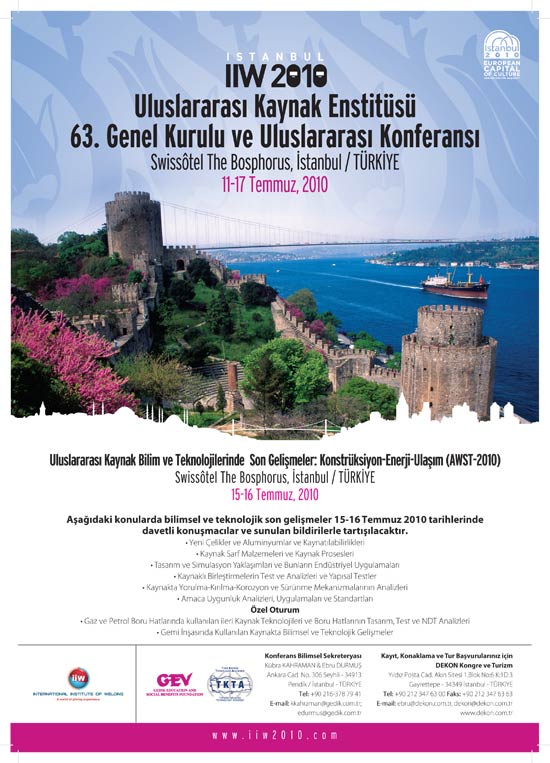 Uluslar arası Kaynak Enstitüsü’nün (IIW) iki yıl önce Türkiye’den sorumlu üyesi seçilen GEV, bu yıl 63.IIW Genel Kurul ve Uluslararası Konferansı’na Swissotel’de ev sahipliği yapacak.