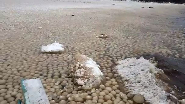 Sahile vuran binlerce buz topunu gören bölge sakinleri şaşkınlığını gizleyemedi. Buz toplarının nasıl oluştuğu ve neden kıyıya vurduğu gizemini koruyor.