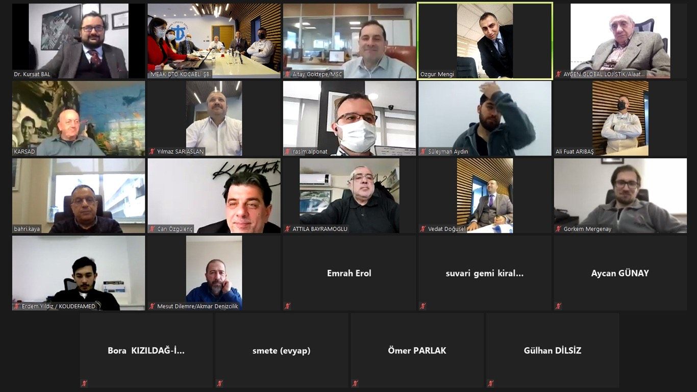 İMEAK Deniz Ticaret Odası (DTO) Kocaeli Şubesi Mart Ayı Olağan Meclis Toplantısı, video konferans yöntemiyle yapıldı. İMEAK DTO Kocaeli Şubesi Meclis Başkanı Dr.Kürşat Bal başkanlığında yapılan toplantıya, Kocaeli Liman Başkan Yardımcısı Özgür Mengi de katıldı.