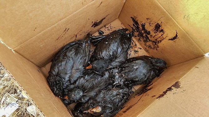Akaryakıta bulanmış kuşlar hala yaşam mücadelesi veriyor