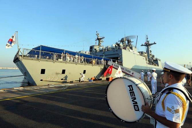 Kore Deniz Kuvvetlerine ait “Roks Kang Gam Chan” isimli destroyer ve “Roks Dae Chung” adlı lojistik destek gemisi, eğitim gezisi kapsamında İzmir’in Alsancak Limanı’na geldi.