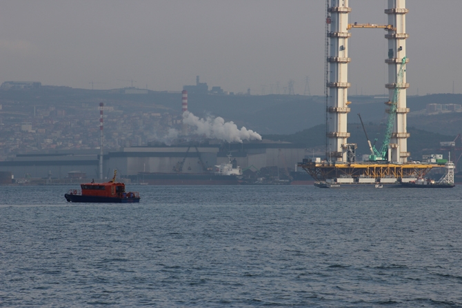 Körfez Geçiş Köprüsü'nün ayakları 161 metreye ulaştı