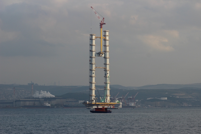Körfez Geçiş Köprüsü'nün ayakları 161 metreye ulaştı