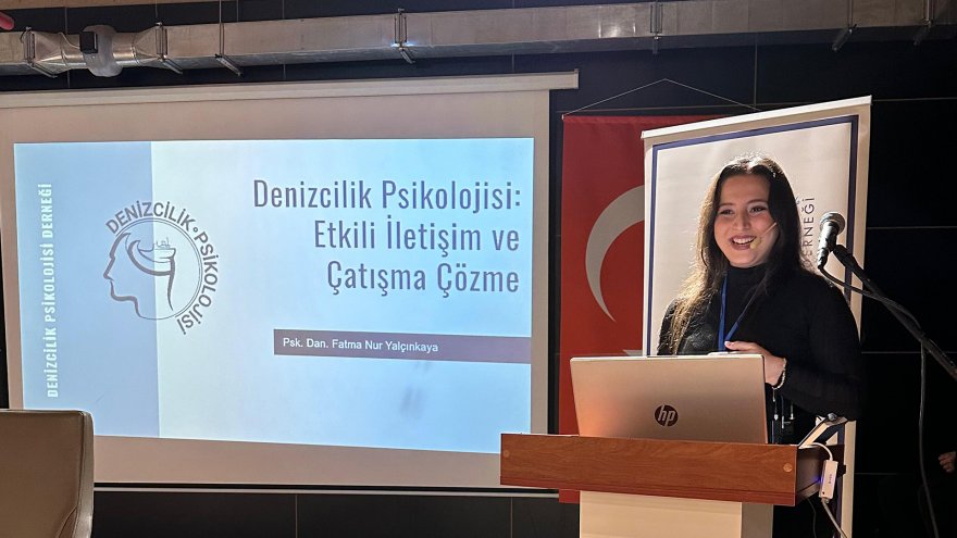 Panelin ikinci konuşmacısı olan Psk. Dan. Fatma Nur Yalçınkaya ise; sunumunun ilk bölümünde denizcilik psikolojisinin tanımını ve çalışma alanlarını anlattı. Fatma Nur Yalçınkaya sunumunda, denizcilerin ruh sağlığına ve refahına zarar veren faktörlere ilişkin önemli noktalara da açıklık getirdi. Anlaşmazlıklarda duygusal zekaya da değinen Yalçınkaya, aynı zamanda etkili iletişim kurmada atılması gereken adımlar ve dikkat edilmesi gereken hususlar konusunda katılımcıları bilgilendirdi.