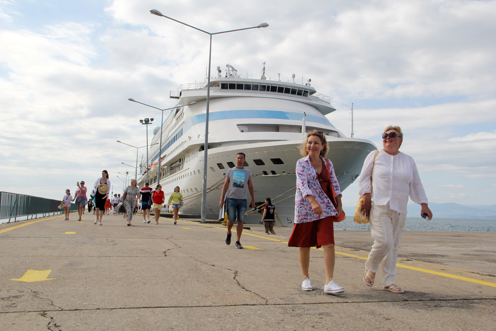 Limana yanaşan geminin yolcularını, İl Kültür ve Turizm Müdürü Metin Süren, İl Emniyet Müdürü Tarıkhan Çetiner ve diğer ilgililer karşıladı.