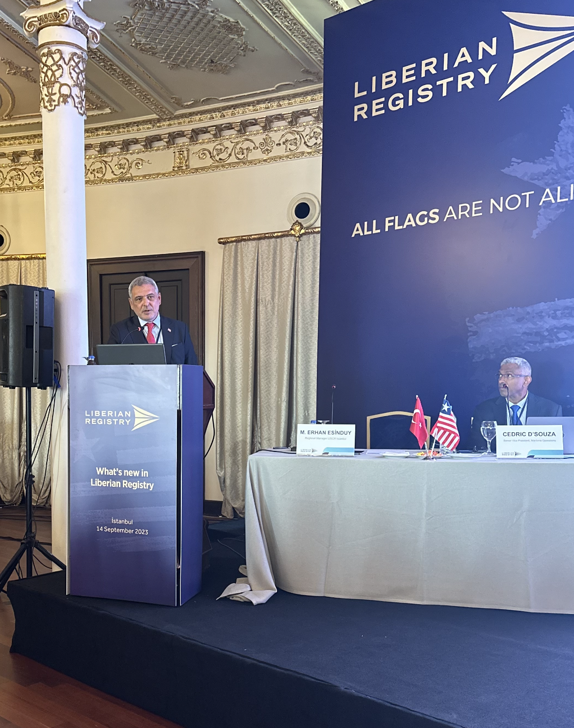 Adile Sultan Sarayı’nda düzenlenen etkinliğe sektörün önde gelen isimleri katılım sağladı. Seminerin açılış konuşmasını Liberya Bayrağı İstanbul Ofisi Bölge Müdürü Erhan Esinduy yaptı. Erhan Esinduy konuşmasının sonunda Liberya Sicili Denizcilik Operasyonları Kıdemli Başkan Yardımcısı Roderick Acquie’yi sunumunu yapması için kürsüye davet etti. Liberya Sicili Denizcilik Operasyonları Kıdemli Başkan Yardımcısı Roderick Acquie; PSC Impact / Dynamic Prevention Program (DPP), Preemptive Inspections, Operational Controls, Duty Officer Service, Liberian Policy / Marine Notices Updates konu başlıklarında yaklaşık bir saat süren bir sunum yaptı.