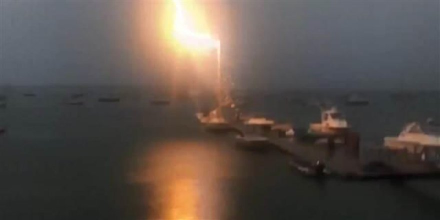ABD'de Cumartesi günü etkili olan fırtınada, yıldırım, limanda demirlemiş bir tekneye düştü. O anlar saniye saniye kaydedildi.