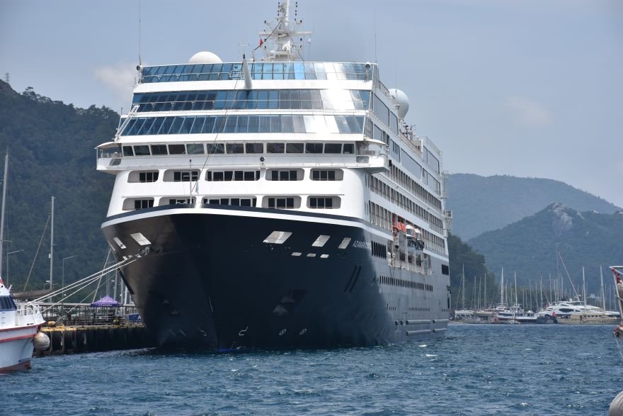 Malta bayraklı lüks "Azamara Onward" adlı kruvaziyer, ABD ve İngiliz yolcularıyla Muğla'nın Marmaris ilçesine geldi. Rodos Limanı ziyaretinin ardından rotasını Marmaris'e çeviren 181 metre uzunluğundaki kruvaziyer, Marmaris Cruise Port büyük iskelesine yanaştırıldı.