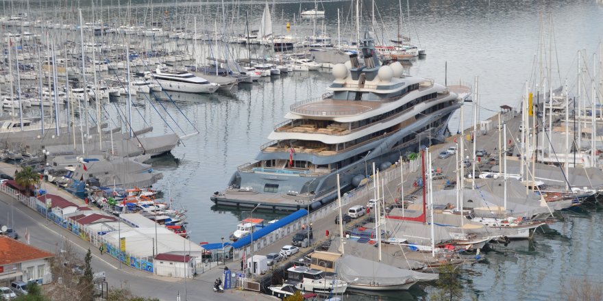 Dünyanın en zengin iş adamlarından Amazon'un sahibi Jeff Bezos'un süper yatı 'Flying Fox', Fethiye'ye demir attı.