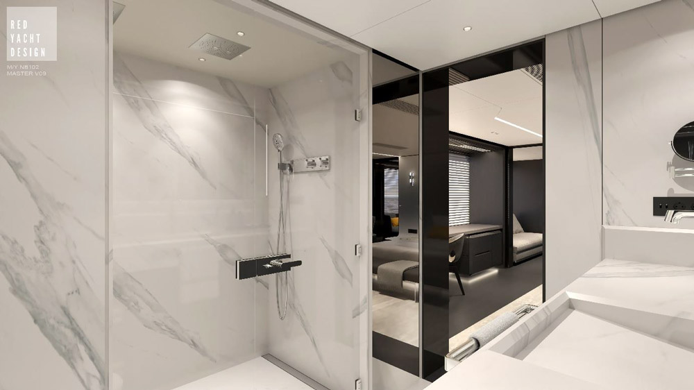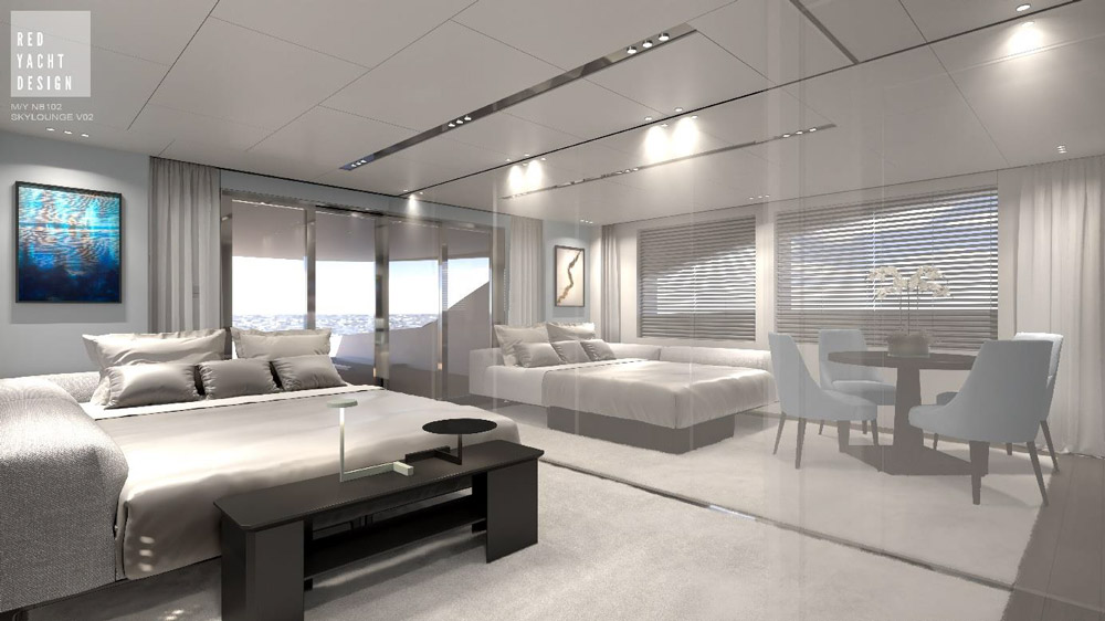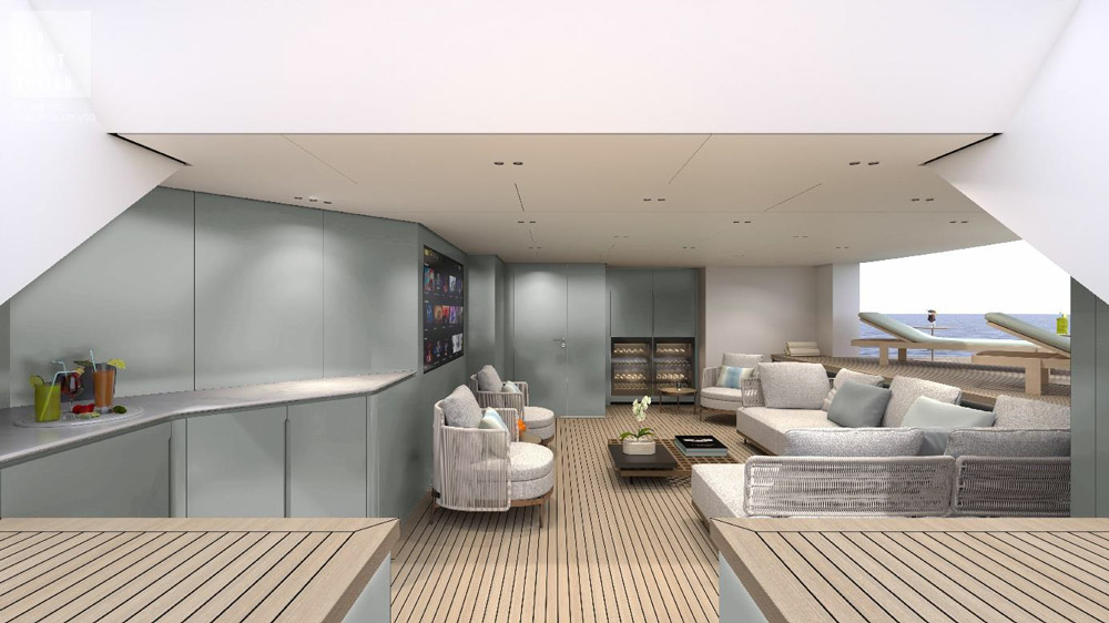 Teknenin dış dizaynı VYD Studio, iç dizaynı ise Red Yacht Design tarafından gerçekleştirildi Tekne her iki tarafta bulunan balkona sahip geniş bir salon, ana ve üst güverte arka oturma alanları ile sahibine geniş bir yaşam alanı sunuyor.