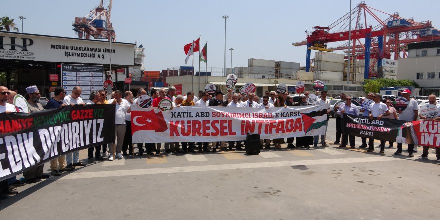 İsrail'in 7 Ekim 2023'te başlattığı Gazze'ye yönelik saldırıları devam ederken, Türkiye ve dünya genelinden gelen tepkiler giderek büyüyor. Açlık, susuzluk ve yoklukla mücadele eden Gazze halkına yardım ulaştırmak amacıyla 1 Haziran 2025 tarihinde yola çıkan ve içerisinde 12 aktivistin bulunduğu 'Madleen' isimli insani yardım gemisine, İsrail donanması tarafından müdahale edildi. Kuşatılan 'Madleen' gemisi için sesler Mersin'den de yükseldi. Mersin Filistin Dayanışma Platformu tarafından 'Madleen' gemisine destek amaçlı Mersin Limanı önünde gösteri düzenlendi. Vatandaşlar ellerinde pankartlar ve Filistin bayrakları ile 'Katil İsrail kahrolsun ABD' sloganları attı.